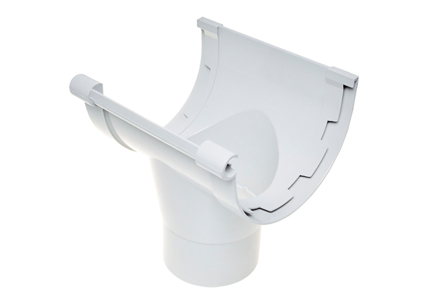 Sale Bajada Canaleta de PVC BlancoSirve para unir una canaleta de PVC con otra y además unir un tubo de bajada de PVC.