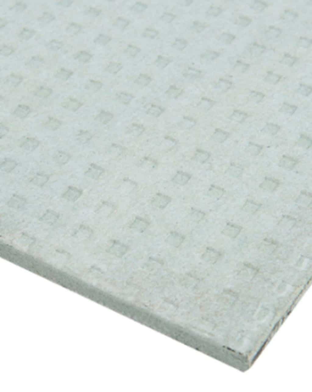 La plancha lisa BASE CERAMICA 6.0MM 1.20 X 2.40 MTS, es una placa de fibrocemento color verde con textura de trama bajo relieve, para la aplicación de cerámica. Al ser una superficie rugosa, es especial para la instalación de cerámica, por su superficie texturada, que apoya la distribución y fijación del aditivo. Sus dimensiones son 1200 x 2400 x 6 mm. Se instala de la misma forma que otras placas de fibrocemento y también sobre estructura de madera o metálica. Está fabricada especialmente para la aplicación de palmetas y a la vez es resistente a la humedad, no se deforma ni deteriora, evitando los problemas de desprendimiento de cerámicas o de placas de yeso-cartón deterioradas en baños o cocinas.