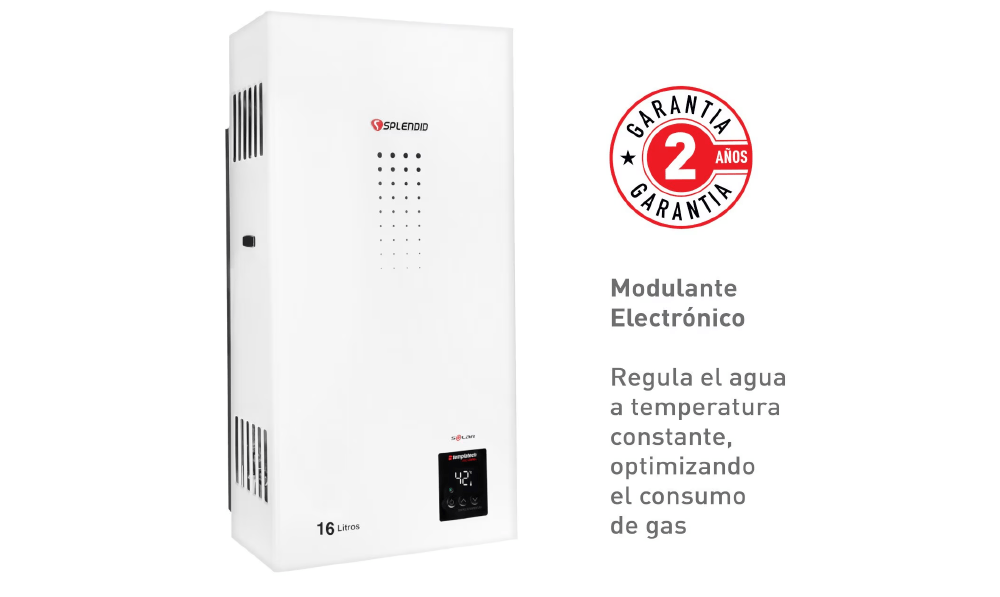 Calefont modulante Splendid de tiro Natural con tecnología modulante Templatech que ahorra hasta un 30% de gas. Eficiencia y seguridad con 70 años de respaldo.