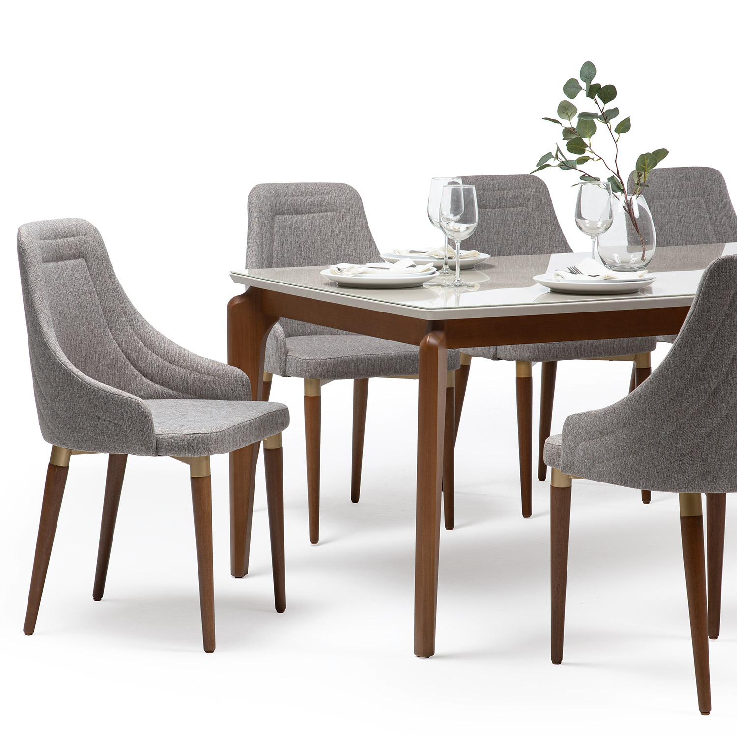 • Estilo Sofisticado: La combinación de la mesa Laurent Off White con las sillas Evelyn crea un ambiente elegante y contemporáneo en tu comedor.