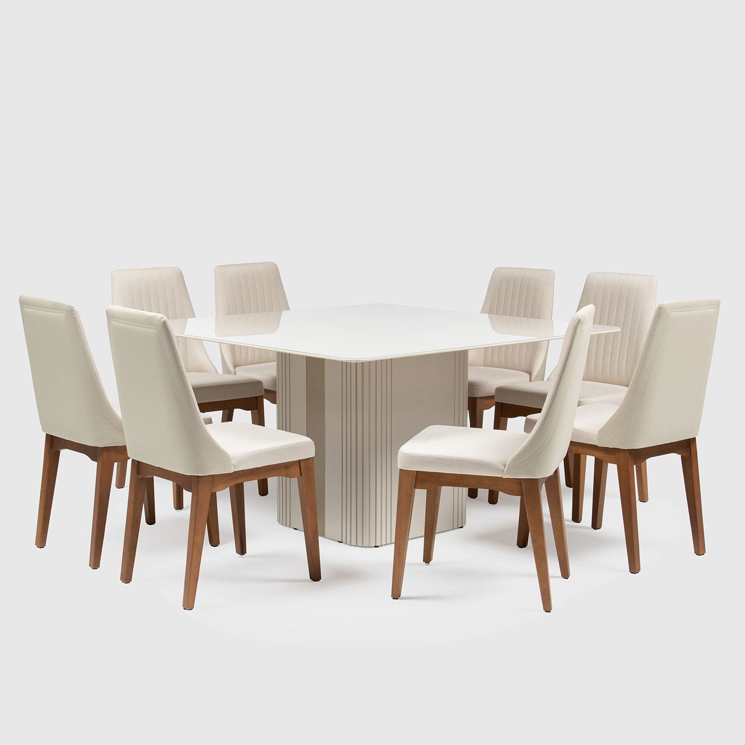 producto disponible después de 31 de mayo Comedor Liege cuadrada + 8 Sillas Elsie beigeLargo: 135 cmAlto: 76 cm.Ancho: 135 cmInformaciónVidrio pintado y pegado.Somier de láminas de MDF.Detalle en pintura metalizada.Sillas Elsie Beige Material de la estructura: Madera maciza, MDF.Altura: 91,2 cm (Del suelo al asiento: 49 cm)Largo: 45 cmAncho: 55,1 cm (Ancho del asiento: 44,4 cm)Densidad: Asiento D23 / Respaldo D20Peso soportado: 120 kgPeso de producto: 7,7 kgHaz click aquí para revisar el valor del armado.Comedores de Oferta Outlet .Recomendaciones de UsoPara mover el comedor de un sitio a otro, debe alzar por ambos lados del mismo para que la base no sufra ningún daño de arrastre y pueda perder vida útil.No debe colocar platos fríos o calientes directamente a la cubierta de vidrio del comedor para que no sufra un choque térmico y debilite el vidrio.