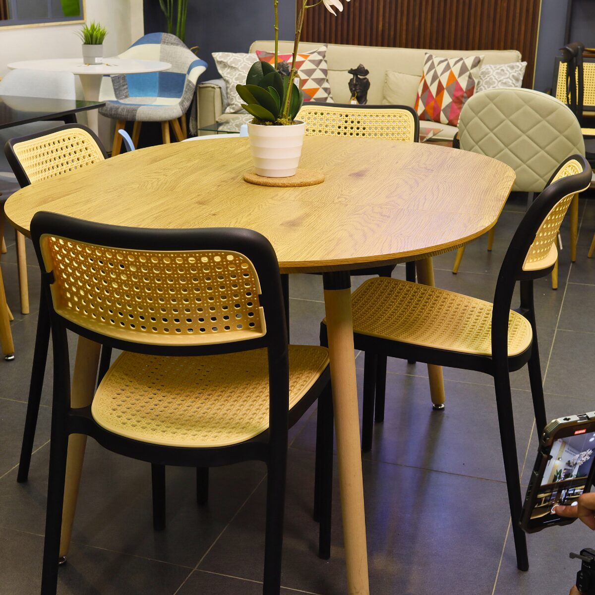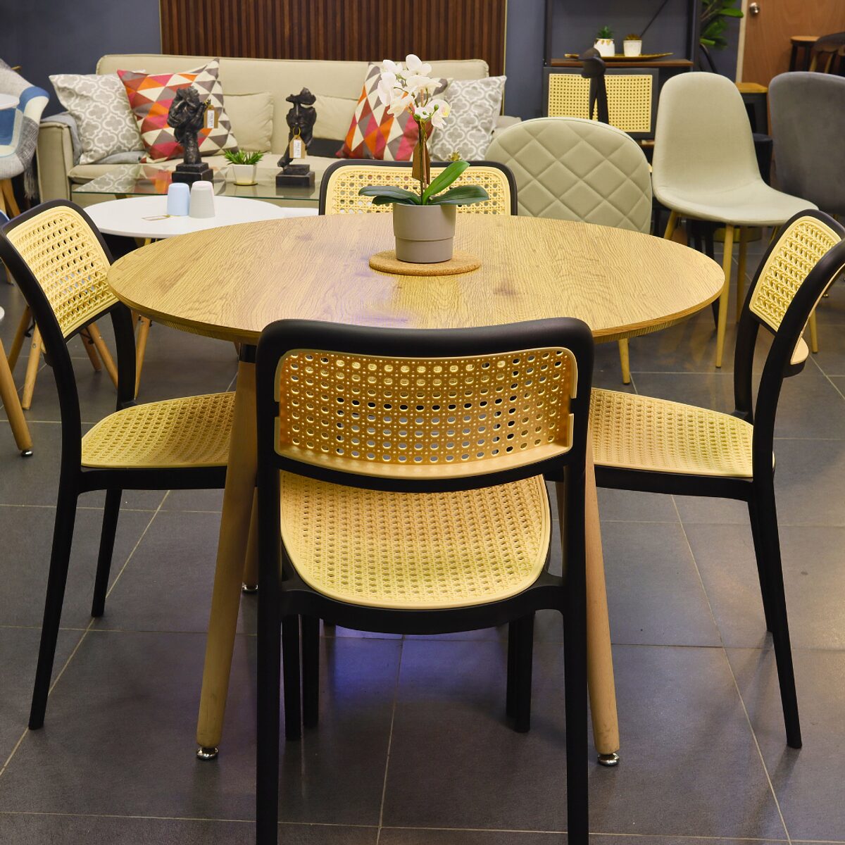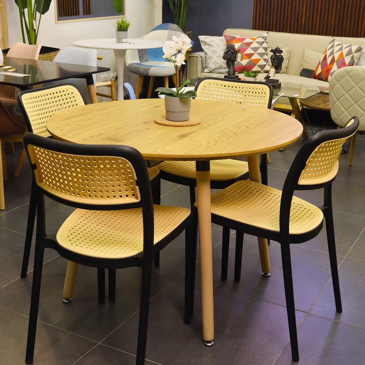 Comedor Wood Extensible + 4 Sillas Aia: Un Refugio de Elegancia y FuncionalidadAdéntrate en una experiencia culinaria sin igual con el Comedor Wood Extensible, acompañado de las icónicas Sillas Aia. Diseñado para aquellos que valoran la estética y la practicidad, este conjunto es la fusión perfecta de diseño contemporáneo y funcionalidad extensible.Mesa Wood Extensible: Una pieza maestra de artesanía, esta mesa se extiende desde un tamaño compacto de 100 cm hasta un generoso 180 cm, permitiendo adaptarse a cualquier ocasión, desde cenas íntimas hasta reuniones familiares extensas. Su acabado en madera pulida refleja la esencia del diseño moderno, convirtiéndola en una pieza central que captura la atención en cualquier espacio. Descubre más aquí.Sillas Aia: Estas sillas, con su diseño entrelazado de asiento y respaldo en un elegante tono negro, no solo ofrecen comodidad, sino también un estilo inigualable que complementa perfectamente la mesa Wood. Su estructura robusta garantiza durabilidad, mientras que su diseño ergonómico promete horas de confort. Conoce más sobre las Sillas Aia aquí.Ya sea que estés renovando tu comedor o buscando ese conjunto perfecto que combine estilo y funcionalidad, el Comedor Wood Extensible + 4 Sillas Aia es la elección ideal. No solo es una inversión en diseño de alta calidad, sino también en momentos inolvidables compartidos alrededor de una mesa.Características Principales:Mesa extensible de 100cm Redonda a 140x80cm o 180x80cm alargada con extremos redondosAcabado en madera de superficie texturizada de alta calidadSillas Aia ergonómicas en tono negroDiseño contemporáneo y funcionalidad extensibleNo esperes más y transforma tu espacio con este conjunto de comedor que redefine la elegancia y la practicidad. Haz de cada comida una ocasión especial con el Comedor Wood Extensible + 4 Sillas Aia.Conoce como funciona nuestra mesa extensibleCuidados y mantenimiento para prolongar la vida Útil de tu MesaPara mantener tu mesa en excelente estado y asegurarte de que dure muchos años con un uso cotidiano como mesa de comedor, sigue estos sencillos pero efectivos consejos: Limpieza y Mantenimiento Regular1. Limpieza Diaria – Utiliza un paño suave y ligeramente húmedo para limpiar la superficie de la mesa después de cada uso. – Evita el uso de productos de limpieza abrasivos o químicos fuertes que puedan dañar la superficie.2. Secado Inmediato: – Siempre seca la superficie después de limpiarla con un paño seco y limpio para evitar que la humedad se infiltre y cause daño.Protección Contra Daños3. Uso de Manteles y Posavasos: – Coloca manteles individuales y posavasos para proteger la mesa de derrames, manchas y marcas de calor.4. Protección Contra Calor y Frío: – Evita colocar objetos muy calientes o muy fríos directamente sobre la mesa. Usa protectores térmicos o salvamanteles.Prevención de Arañazos/ raspaduras:5. Uso de Protector de Mesa: – Considera utilizar un protector de mesa transparente o una cubierta de vidrio para proteger la superficie de arañazos y desgaste.6. Cuidado con los Objetos Pesados: – Evita arrastrar objetos pesados sobre la mesa. Levántalos y colócalos con cuidado. Control de Humedad7. Condiciones Ambientales: – Mantén la mesa en un ambiente con niveles de humedad controlados. La exposición excesiva a la humedad puede causar daños.Reparaciones Menores8. Reparación de Arañazos y/o raspaduras: – Para pequeños arañazos, puedes usar un plumón especial de retoque del mismo color que la superficie de la mesa. – Para arañazos más profundos, considera lijar ligeramente y aplicar una capa de barniz o sellador compatible.Mantenimiento Periódico9. Reaplicación de Sellador: – Cada seis meses a un año, considera aplicar una capa de sellador o cera específica para madera para mantener la superficie protegida.10. Revisión de Bordes: – Revisa periódicamente los bordes de la mesa para asegurarte de que no se estén despegando. Si notas algún desprendimiento, aplica un adhesivo adecuado para fijarlos nuevamente.Siguiendo estos sencillos consejos, tu mesa no solo mantendrá su apariencia elegante, sino que también conservará su funcionalidad y durabilidad con el paso del tiempo. Invierte en el cuidado de tu mesa y disfruta de un mueble que complementa tu hogar con estilo y practicidad. Contenido e imágenes protegidos por derechos de autor de marca registrada Oferta ® en Chile ante INAPI.