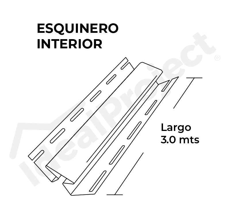 Sale Esquinero Interior 3.0 mts. Largo: 3.80 Mts. Color: Blanco. Uso: Esquinas Interiores de lugar donde se esta Revistiendo. *Se recomienda comunicar con uno de nuestros ejecutivos antes de realizar la compra con el objetivo de recibir asesoría acerca de la instalación y accesorios que pueda necesitar para su proyecto.Importante: Los valores publicados en el sitio web, son con IVA incluido.