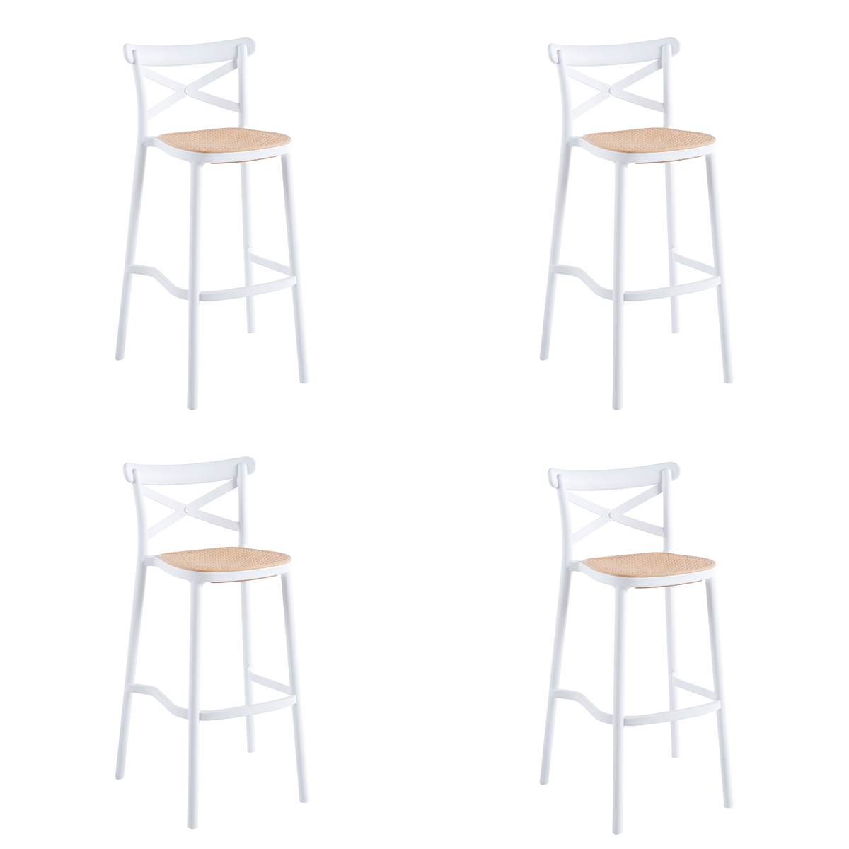 Pack 4 Taburetes Crossback – Elegancia y Comodidad en UnoDescubre la fusión perfecta de estilo y confort con nuestro Pack de 4 Taburetes Crossback. Diseñado para brindarte una experiencia única en asientos, este taburete combina estética y funcionalidad de manera excepcional. Sus líneas limpias y modernas se integran perfectamente en cualquier entorno, desde bares y cocinas hasta restaurantes y eventos.Características Destacadas:Diseño Sofisticado: El taburete presenta un diseño Crossback único que agrega un toque de elegancia a tu espacio, convirtiéndolo en un verdadero atractivo visual.Confort de Primer Nivel: Su asiento ergonómico y respaldo curvado ofrecen una comodidad excepcional, permitiéndote disfrutar de largas conversaciones y momentos placenteros.Durabilidad Garantizada: Fabricado con materiales de alta calidad, este taburete es robusto y resistente, soportando un uso constante sin sacrificar su estilo.Versatilidad en Uso: Ideal tanto para interiores como exteriores, este taburete te brinda la flexibilidad de usarlo en diferentes espacios según tus necesidades.Estilo y Funcionalidad: El diseño elegante no compromete la practicidad. Cada detalle ha sido pensado para ofrecerte una experiencia única en asientos.Añade un toque de clase a tu espacio con este pack de 4 Taburetes Crossback . Su versatilidad y estilo atemporal lo convierten en una elección imprescindible para aquellos que buscan lo mejor en términos de diseño y confort.Dimensiones y Especificaciones:CaracterísticaMedidaAlto total taburete103cmAncho asiento37cmProfundidad asiento40cmAltura del suelo al asiento76cmAltura respaldo28cmAncho respaldo47cmPeso5kgsPeso máximo soportado140kgsMateriales de Calidad:Asiento: Fabricado en polipropileno de alta calidad, proporcionando resistencia y durabilidad.Patas: Diseño con patas de polipropileno, asegurando estabilidad y estilo en un solo paquete.Versatilidad y Estilo en Uno:Nuestro Taburete Crossback es más que un asiento; es una declaración de estilo y calidad. Añade un toque de distinción a tu espacio y experimenta la armonía entre diseño y funcionalidad. Eleva tu entorno con este taburete único.Contenido e imágenes protegidos por derechos de autor de marca registrada Oferta ® en Chile ante INAPI.