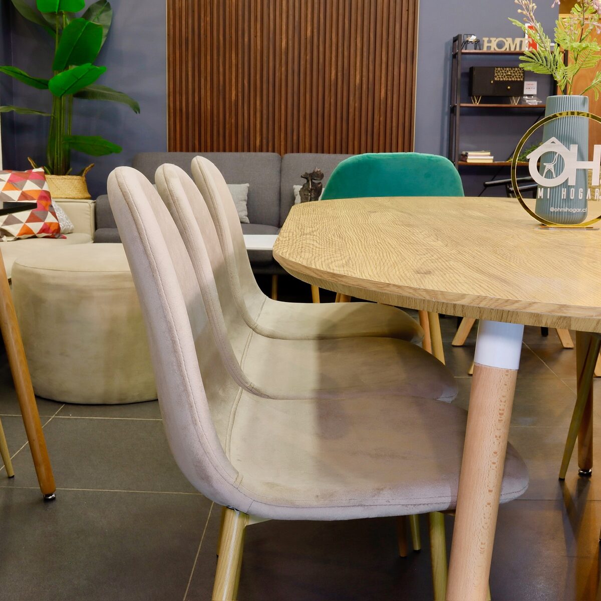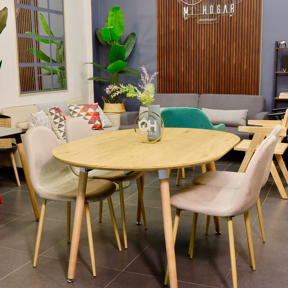 Transforma tu espacio con el elegante y funcional Comedor Extensible + Sillas Eames Velvet. Este conjunto combina la versatilidad de una mesa extensible con la sofisticación y comodidad de las sillas Eames tapizadas en terciopelo. Ideal para cualquier hogar, este comedor se adapta a todas tus necesidades, ofreciendo varias configuraciones según el número de invitados.Opciones de Configuración:Mesa Extensible Wood + 4 Sillas Eames VelvetMesa Extensible Wood + 6 Sillas Eames VelvetMesa Extensible Wood + 8 Sillas Eames VelvetMesa Extensible WoodMaterial: Madera natural comprimida en el interior, recubierto con polipropileno, con patas de acero y madera.Dimensiones:Cerrada: 100cm RedondaPrimera extensión: 140x100cmSegunda extensión: 180x100cmAlto: 75cmCaracterísticas:Diseño moderno y funcionalExtensible, adaptándose a diferentes necesidades de espacioEstructura robusta y estableDimensiones de la Mesa:Tamaño de CubiertaDimensiones (cm)Cerrada100 x 100cmPrimera Extensión140 x 100cmSegunda Extensión180 x 100cmSillas Eames VelvetMaterial:Asiento: Terciopelo de alta calidadPatas: Metal con acabado símil maderaDimensiones:Alto total: 82 cmAncho asiento: 46 cmProfundidad asiento: 41 cmAltura del suelo al asiento: 46 cmAlto respaldo: 41 cmAncho respaldo: 34 cmPeso: 5 kgCapacidad de carga: Soporta hasta 140 kgCaracterísticas:Tapizado en terciopelo suave al tactoDiseño ergonómico para mayor comodidadIdeal para cualquier espacio interiorVentajas del Set:Estilo y Versatilidad: El diseño moderno y elegante de la mesa extensible combinado con las sillas de terciopelo Eames añade un toque de sofisticación a cualquier comedor.Funcionalidad: La mesa extensible permite ajustar el tamaño según la ocasión, ya sea una cena íntima o una gran reunión familiar.Comodidad: Las sillas Eames Velvet proporcionan una experiencia de asiento cómoda y lujosa, perfecta para largas sobremesas.Tips y Recomendaciones para el Mantenimiento de la Mesa Extensible:Limpieza: Utilizar un paño húmedo y jabón neutro para limpiar la superficie. Evitar el uso de productos químicos agresivos.Protección: Utilizar manteles individuales y posavasos para proteger la cubierta de posibles manchas y daños por calor.Extensiones: Asegurarse de abrir y cerrar las extensiones suavemente para evitar daños en el mecanismo.Enlaces de productos individuales:Sillas Eames VelvetMesa Extensible WoodContenido e imágenes protegidos por derechos de autor de marca registrada Oferta ® en Chile ante INAPI.