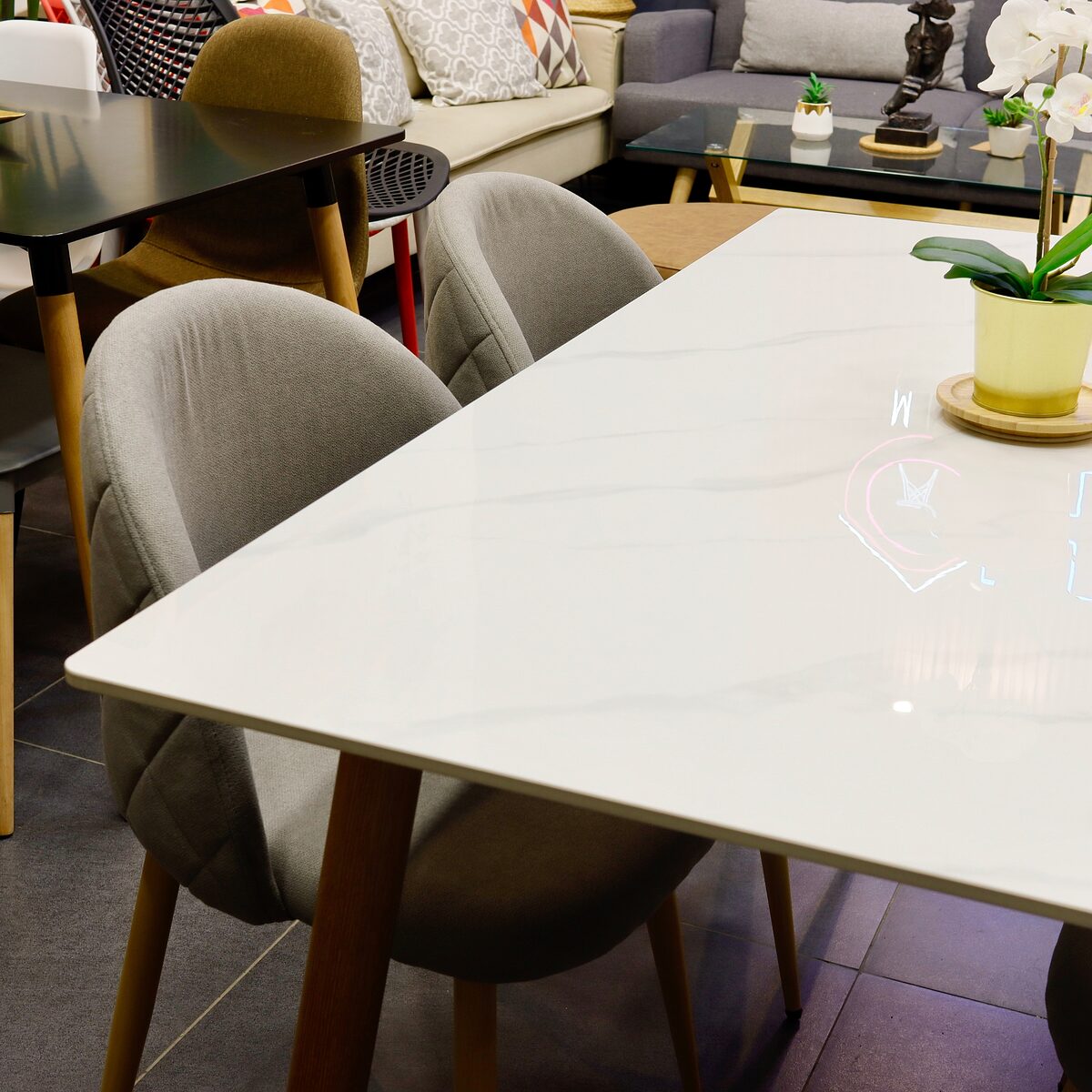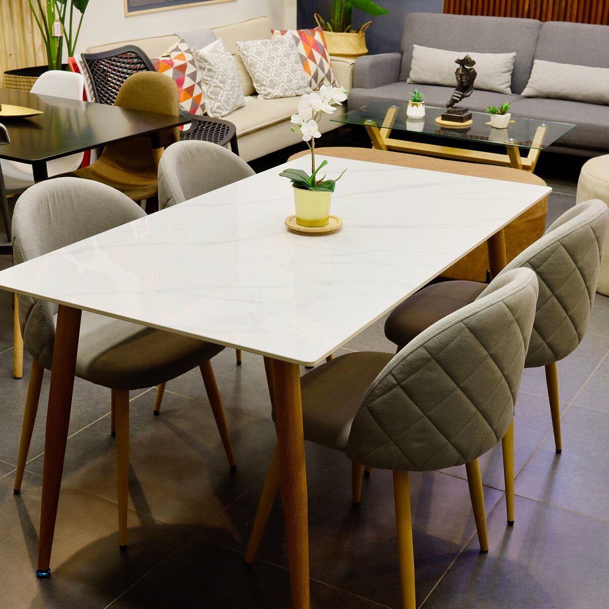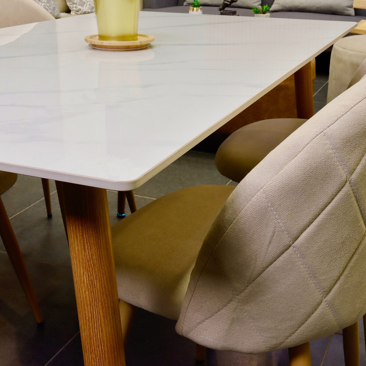 Set Comedor Rectangular de Cuarzo + 4 Sillas Lino Oak