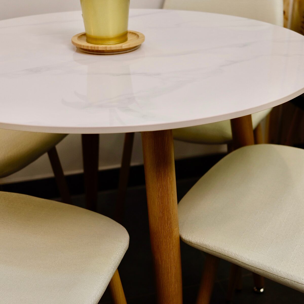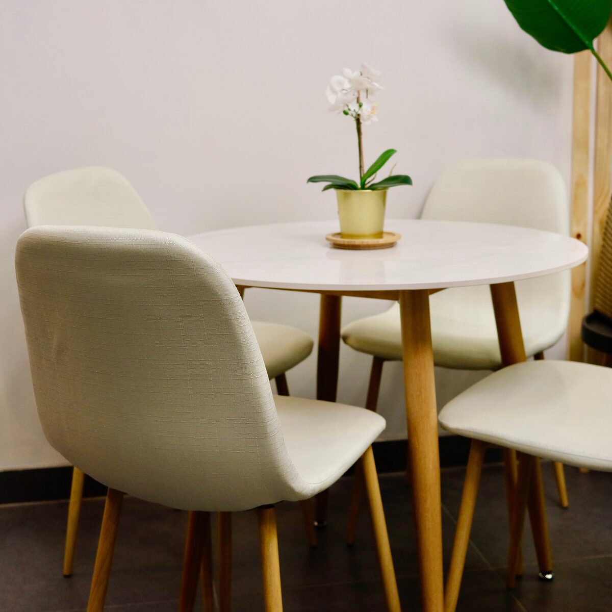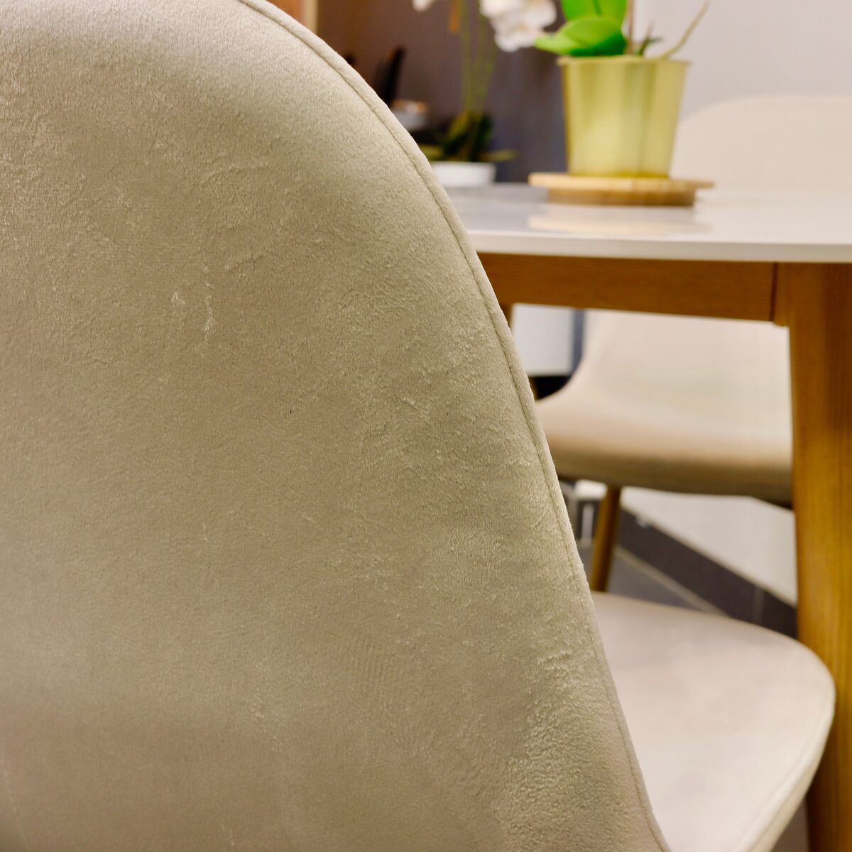 Sillas Eames Velvet y Mesa de Comedor de Cuarzo Calacatta Soft – La combinación perfecta está aquí.Cree un espacio de comedor donde el diseño moderno se encuentra con la comodidad excepcional con nuestras Sillas Eames Velvet y la Mesa de Comedor de Cuarzo Calacatta Soft. Disponibles en opciones cromáticas neutras, nuestras sillas en tono crema aterciopelado se adaptan a cualquier paleta de colores, mientras que la mesa, con opciones de cubierta redonda en 80cm y 100cm de diámetro, se ajusta a la dimensión de su espacio.Silla Eames Velvet:Dimensiones Armoniosas:Altura Total: 87 cm – Una silueta que se impone con elegancia.Ancho del Asiento: 44 cm – Amplitud que abraza.Profundidad del Asiento: 41 cm – Confort en cada centímetro.Altura del Suelo al Asiento: 47 cm – Una elevación que promete vista y comodidad.Altura del Respaldo: 42 cm – Diseño pensado para el bienestar de tu espalda.Ancho del Respaldo: 38 cm – Soporte seguro para una postura ideal.Resistencia Superior: Soporta hasta 160 kg de peso, ofreciendo un refugio de estabilidad y durabilidad.Material Innovador:Patas de Fierro: Unión perfecta de fuerza y estilo, con un acabado que imita la madera y añade un toque natural.Uso Flexible: Ideal tanto para interiores como exteriores, con una resistencia a la decoloración que desafía al tiempo.Mesa de Comedor de Cuarzo Calacatta Soft:Dimensiones: Alto de 73,5 cm, con cubiertas de cuarzo espaciosas disponibles en 80cm y 100cm de diámetro, y un grosor de 10 mm.Material: Superficie de cuarzo Calacatta Soft resistente a manchas y rayaduras, con una base de fierro resistente.Esta combinación garantiza un ambiente acogedor y sofisticado para cualquier hogar u oficina, reflejando tanto resistencia como elegancia. Las sillas ofrecen una experiencia de asiento confortable y duradera, mientras que la mesa es una declaración de belleza atemporal y practicidad.Nota: Contenido e imágenes protegidos por derechos de autor de marca registrada Oferta ® en Chile ante INAPI.